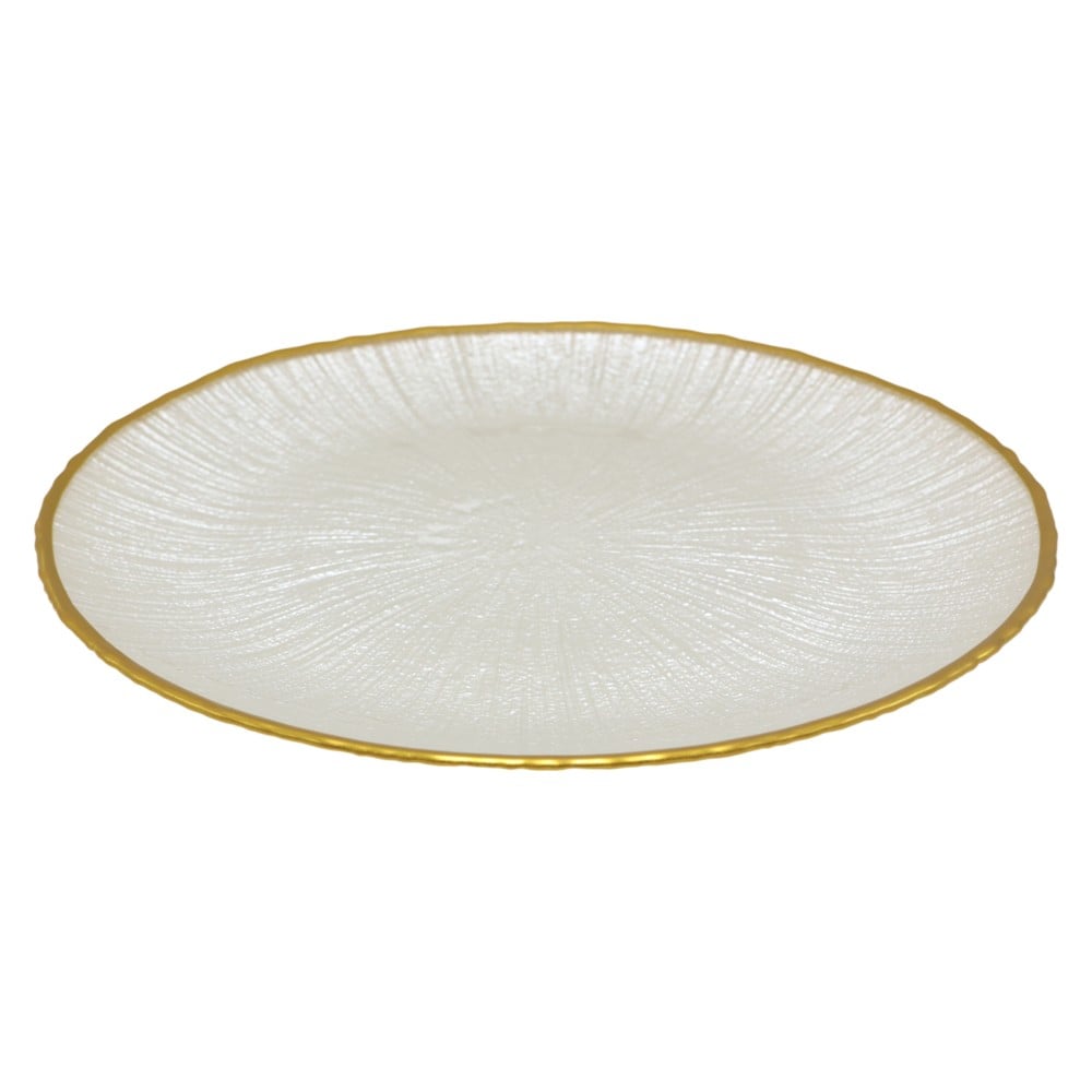 Pjatë ëmbëlsire, qelqi, e bardhë me konturnë floriri, Dia. 21 cm
