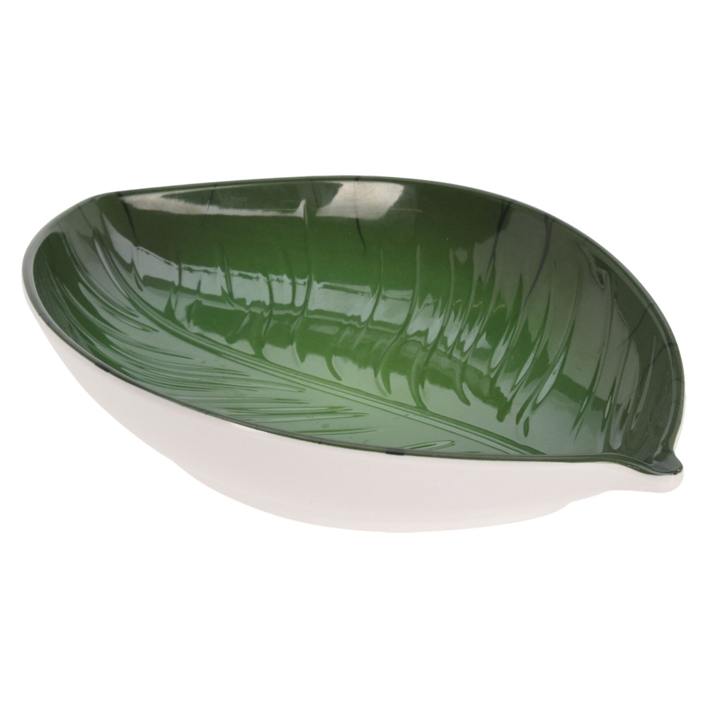 Kjo pjatancë e bukur prej melamine, me ngjyrë jeshile të freskët dhe dizajn unik në formë gjetheje, është një zgjedhje perfekte për të shtuar një prekje natyrore dhe të rafinuar në tryezën tuaj. Me përmasa 23 x 15 cm, ajo është ideale për servirjen e sallatave, antipasteve ose si një pjatë dekorative për shërbimin e ëmbëlsirave dhe ushqimeve të tjera të vogla. Melamina ofron një material të qëndrueshëm dhe të lehtë për tu pastruar, duke qenë një opsion i shkëlqyer për përdorim të përditshëm, por edhe për ngjarje speciale dhe festa. Forma e gjetheve dhe ngjyra jeshile shtojnë një atmosferë të freskët dhe natyrale, duke e bërë këtë pjatë të përshtatshme për çdo ambient.