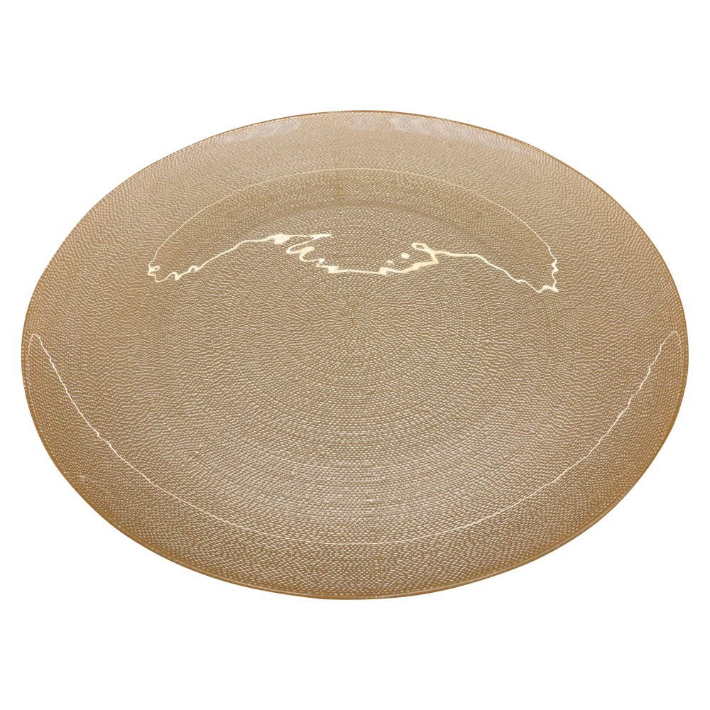 Pjata e servirjes "Aurora", e bërë nga qelqi me efekt floriri dhe me një diametër prej 28 cm, është një element i shkëlqyer për prezantimin e ushqimit në tavolinë.