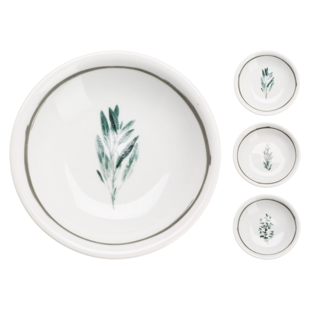 Kjo pjatë elegante prej porcelani me ngjyrë të bardhë është e zbukuruar me dekor të veçantë erëzash, duke i dhënë një prekje unike dhe të rafinuar. Me diametër 10 cm, ajo është ideale për servirjen e antipasteve, ëmbëlsirave ose si pjatë anësore për çdo vakt. Dekorimi me erëza e bën atë të përshtatshme për raste speciale, duke shtuar një element natyror dhe të freskët në tryezë. Porcelani ofron një material të qëndrueshëm dhe të sigurt, ndërkohë që dizajni i thjeshtë dhe i bukur mund të kombinohet lehtësisht me enë të tjera, duke i dhënë çdo shërbimi një elegancë të veçantë.