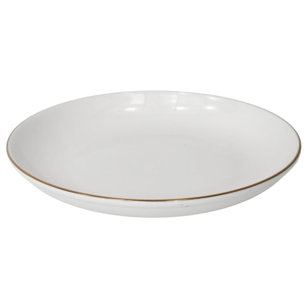 Pjatë servirje, qeramikë, e bardhë me konturnë floriri, Dia. 23 cm