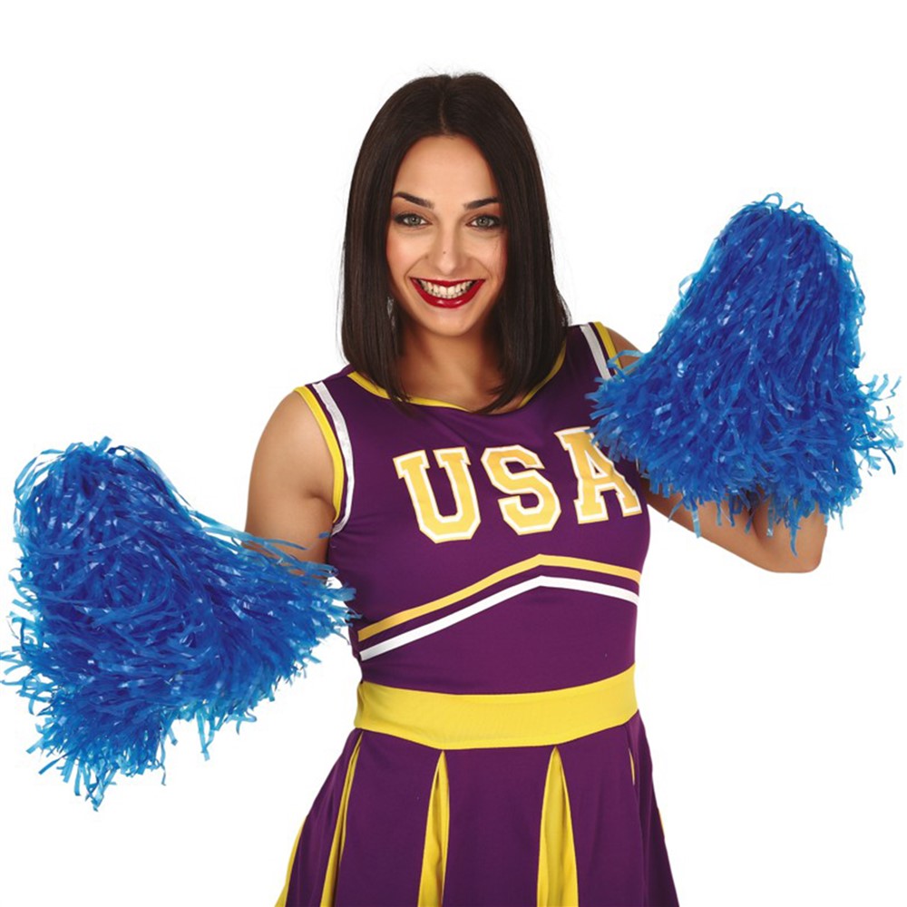 Pom poms prej materiali plastik, në gramaturë 80 gr, në ngjyrë blu. E përshtatshme për tu përdorur në veshjet e nxitësve të tifozave.