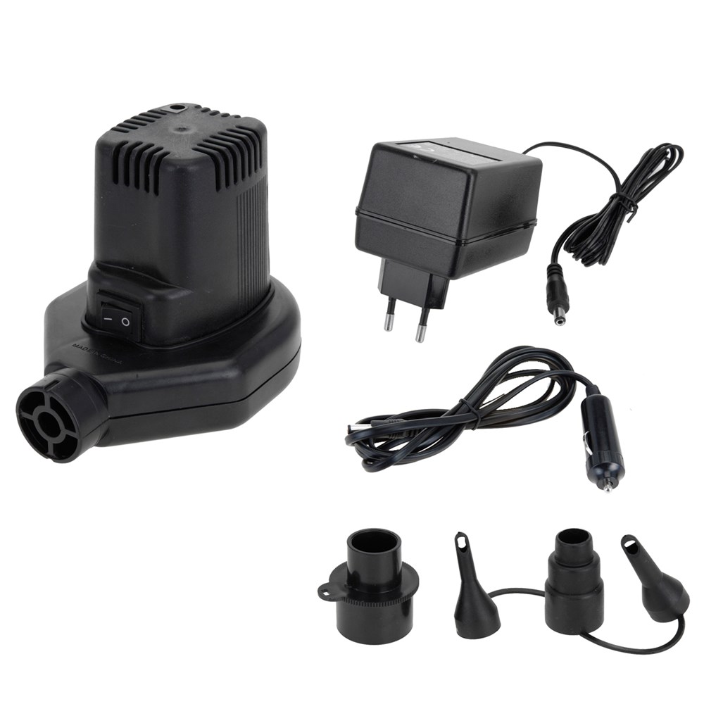Pompë elektrike tepër prkatike për aventurat që do të zgjidhin problemet tuaja. kjo pompë ju lejon të fryni dhe çmontoni objekte inflatable. Kjo pompë ka një fuqi: 60 W - tension: 12 V. Punon duke u lidhur me prizën e çakmakut të makinës. Përfshin të gjithë aksesorët e nevojshëm. Me përshtatës të rrymës, tension i hyrjes: 230 V, 50 Hz, 0.5 A - tension i daljes: 12 V, 4500 mA, dhe kabllon e lidhjes me çakmak 180 cm.