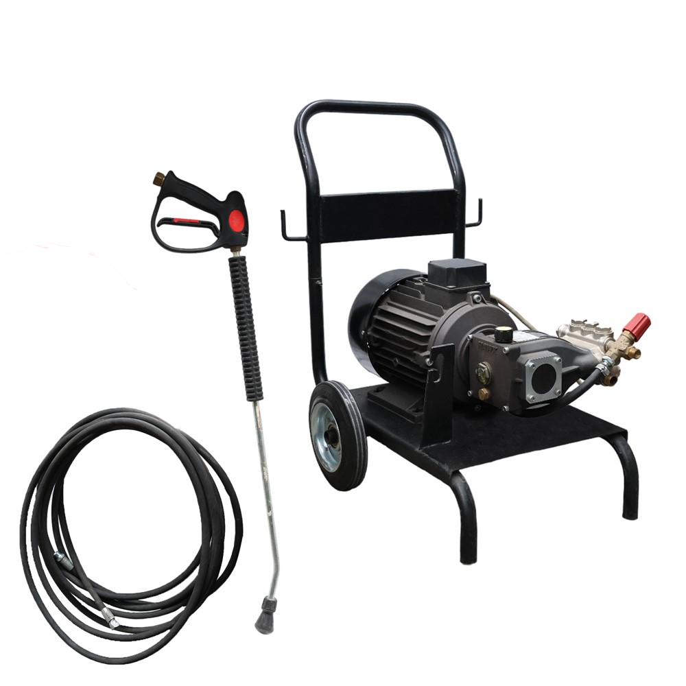 Pompë lavazhi profesionale 5.7 KW, 200 bar 1450 RPM, performancë të lartë dhe jetëgjatësi. E pajisur me motor të fuqishëm elektrik 3 fazor dhe grup pompe inoksi ajo mund të largojë papastertitë në sekonda. E mbuluar me mbulesë inoksi kundër ndryshkjes