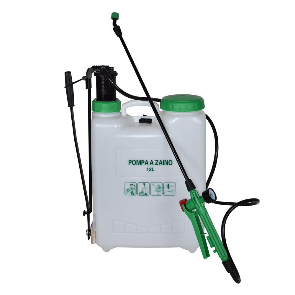 Pompë spërkatje shpine, bërë nga PVC për spërkatje bimëve. Ideale për kopshtin apo bahçen tuja. Steka e saj e rregullueshme ju lejon për një spërkatje efikase duke boshatisur pompën tërësisht. Mos përdorni tretës ose substanca të ndezshme. Kapaciteti i pompës: 12 litra, gjatësia e stekës 55 cm dhe bashkë me tubin shkon ne 150 cm. E përshtatshme për: ujë, pleh, pesticide dhe herbicide.