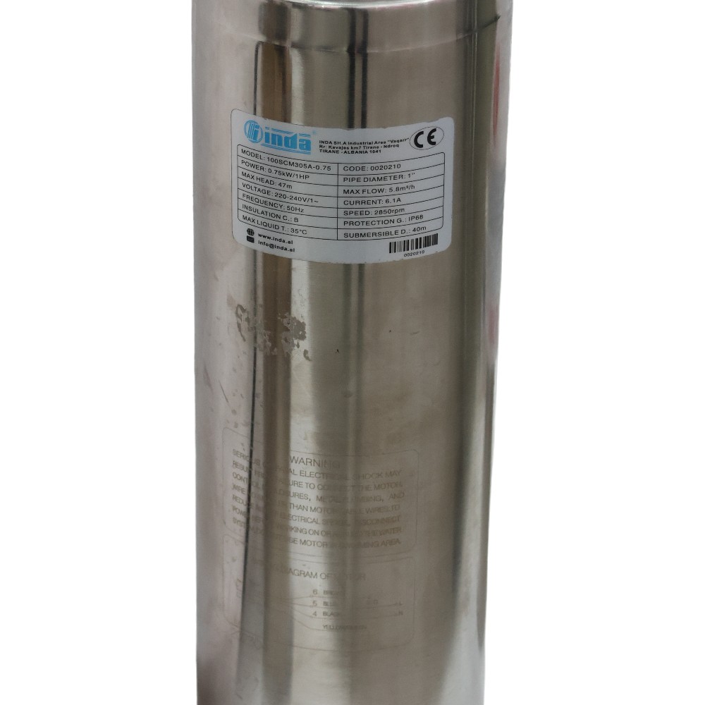 Pompe uji zhytese me galixhan 100SCM305(A), Inda 230 V, 0.75 kW, 1'', 30 m kabell.E përshtatshme për përdorim me ujë të pastër dhe lëngje që nuk janë kimikisht agresive ndaj materialeve nga të cilat është bërë pompa. Efikasiteti dhe përshtatshmëria e lartë e këtyre pompave edhe me aplikimet më të pazakonta, e bën idealin për përdorim në sektorët shtëpiak, civil dhe industrial, në veçanërisht për shpërndarjen e ujit në kombinim me grupet e presionit, për rritjen e presionit dhe në grupet kundër zjarrit. Pompa duhet të instalohet në një mjedis të mbyllur, ose të paktën të mbrojtur nga moti i keq.