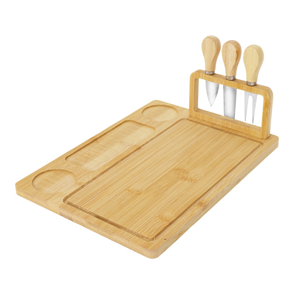 Prerëse dhe aksesor për servirjen e djathit, druri, natyrale, 24x33x1.5 cm