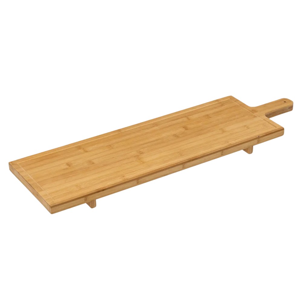 Prerëse druri me kembe, prej druri bambu ne ngjyre bezhe. Ka një dorezë për transport të lehtë. Pjatë ideale për të shërbyer meze ose djathra të vegjël në mes të tryezës tuaj.