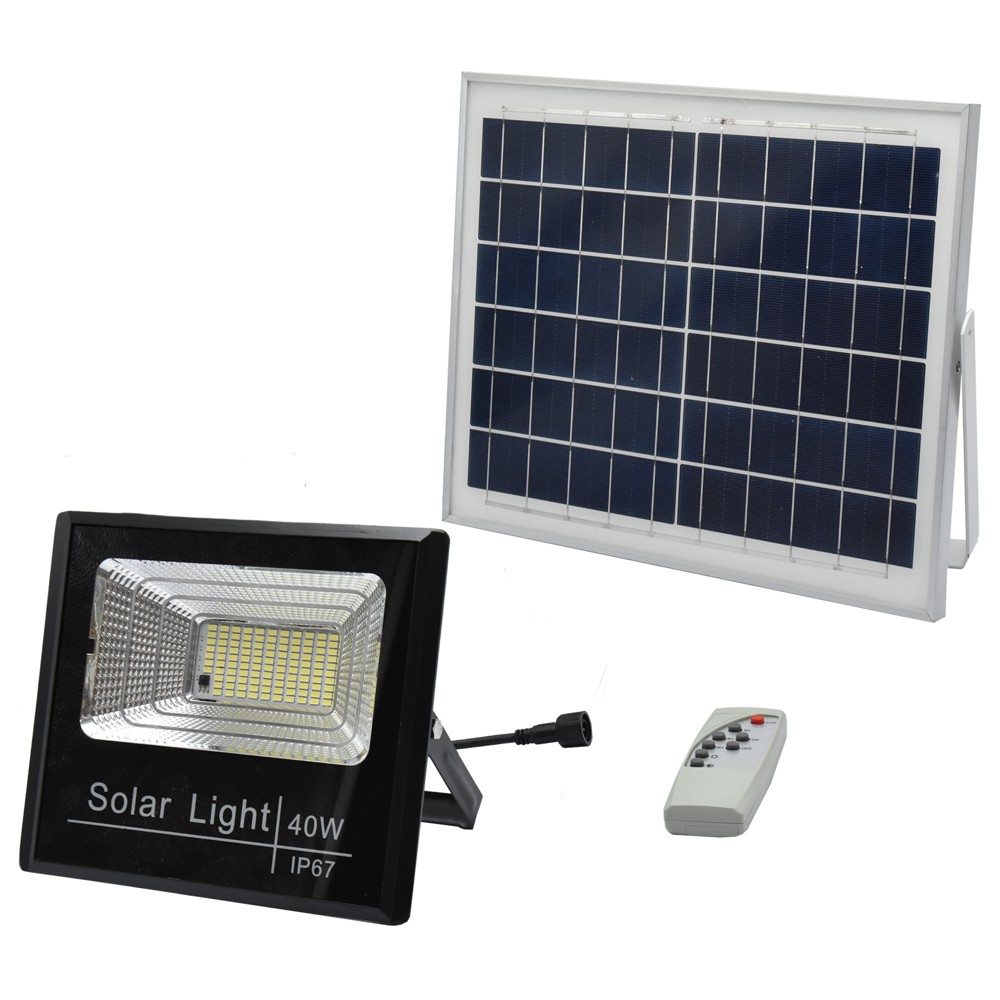 Prozhektor me panel diellor, 40 W, 6500 K.Ndricuesat me panel diellor jane ideale per te ndricuar ambientet tuaja me kosto zero.Instalim super i thjeshte pa nevojen e percjellsave elektrike.Mund ta komandoni ne distance deri ne 15 m nepermjet pultit.