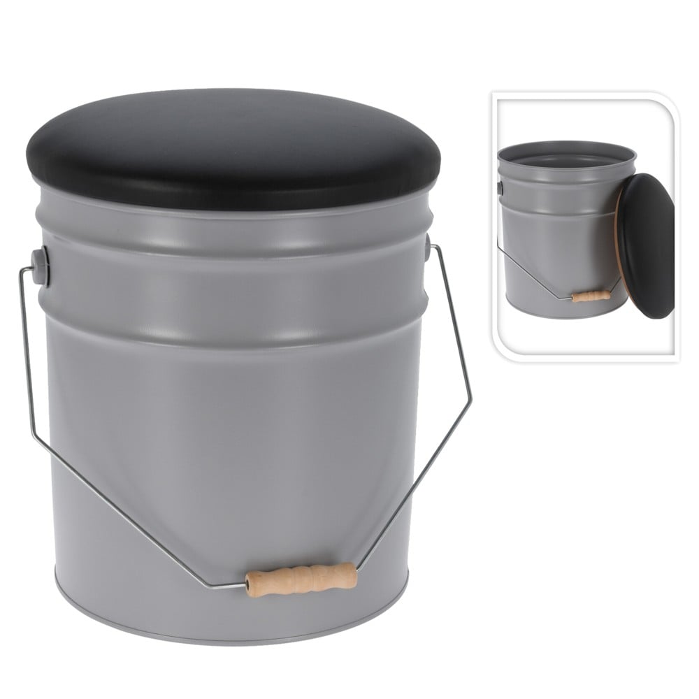 Një pupë komode në një stil industrial mbi një bazë metalike gri. Kjo pupë ka një sedilje të lëvizshme të bërë nga dërrasa mdf e zbukuruar me lëkurë të zezë. Pas heqjes së sediljes kemi një hapësirë praktike magazinimi. Një dorezë e rehatshme prej druri do ta bëjë më të lehtë për tu mbajtur. E stilizuar si një kovë në një stil retro. Mund ta vendosni në dhomën e ndënjes, sallon, kopësht ose ballkon.