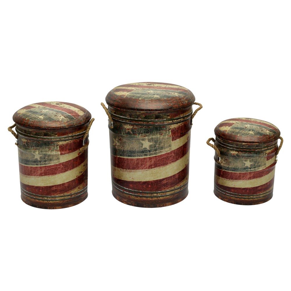Po vlerësoni:Pupë set 3 copë, AMERICAN FLAG, strukturë metali, tapiceri PU, shumëngjyrëshe, Ø27xH32 cm; Ø31xH36 cm; Ø36xH44 cm