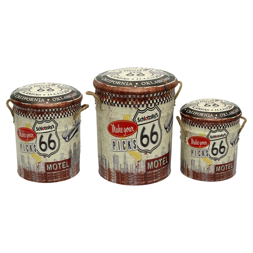 Po vlerësoni:Pupë set 3 copë, ROUTE 66, strukturë metali, tapiceri PU, shumëngjyrëshe, Ø27xH32 cm; Ø31xH36 cm; Ø36xH44 cm
