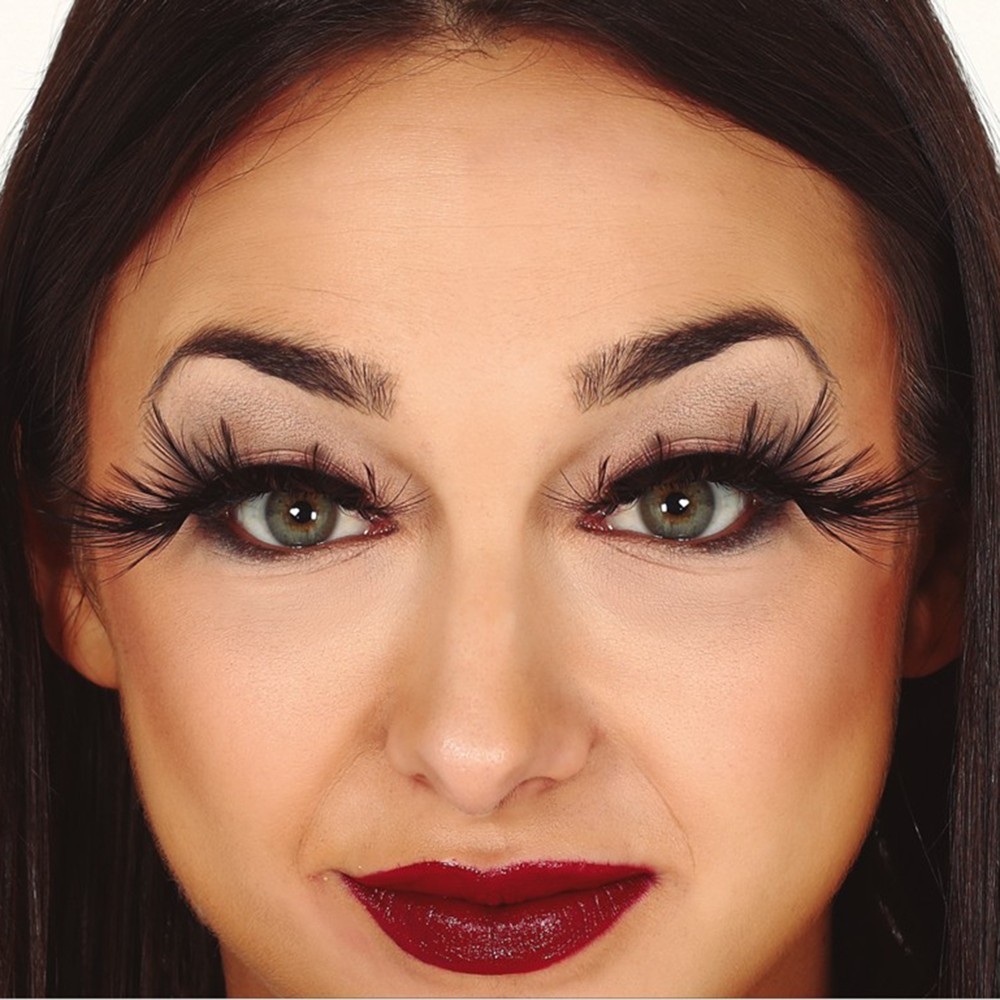 Qerpikë fals për halloween, me pupla, e zezë, të gjata, 1 copë