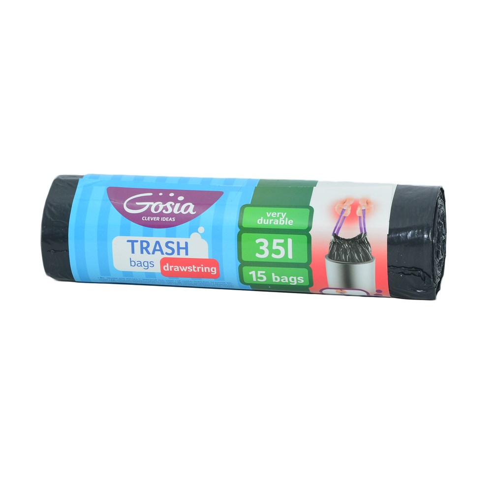 Qese mbeturinash, "Gosia", plastike, 35 lt, 35x40 cm, e zezë, 15 ndarje, me lidhese, 1 copë