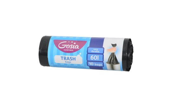 Qese mbeturinash," Gosia", plastike, 60 lt, 53x65 cm, e zezë, 10 ndarje, me litar, 1 copë