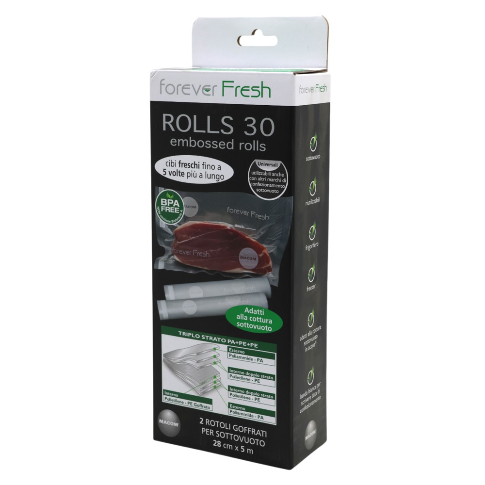 Këto qese ruajtëse e mbajnë ushqimin të freskët deri në 5 herë më gjatë, duke garantuar freski dhe duke kursyer para. Qeset e ruajtjes mund të përdoren në frigorifer ose në ngrirje të gatuara në një tenxhere të dyfishtë ose në mikrovalë për të shkrirë ushqimin e konservuar. Disponohen në madhësi të ndryshme për të plotësuar çdo nevojë dhe mund të përdoren me makineri të markave të tjera të izolimit me vakum. Prodhuar në Itali.