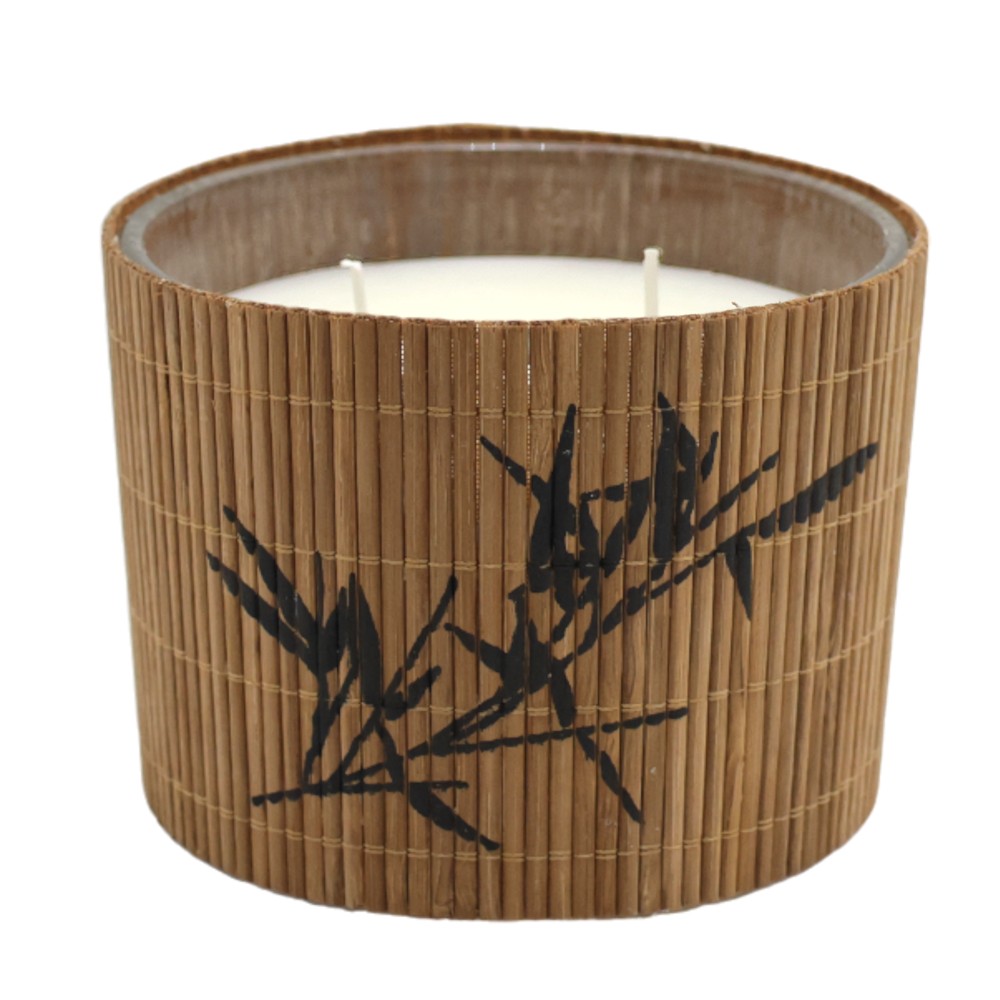 Po vlerësoni:Qiri aromatik me mbajtese qelqi, arome lule Bamboo, ngjyre natyrale bamboo, 11x8 cm
