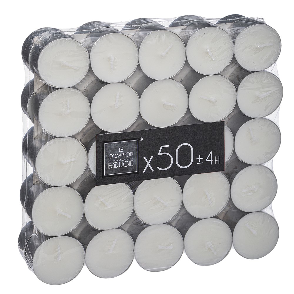 Qiri parafinë i bardhë në paketim 50 copë, i përshtatshëm për dekorim tryeze dhe për përdorime të tjera