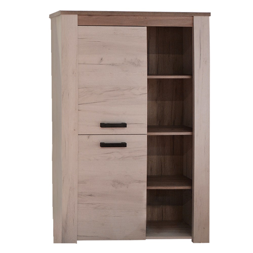 Po vlerësoni:Raft anesor 2-kanata 1/2, KENT, Melamine dhe xham, e Bardhe Lisi / Gri Lisi, 99.5x36.5xH146.5 cm