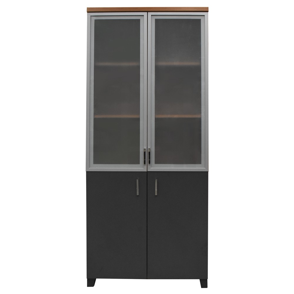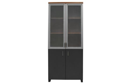 Po vlerësoni:Raft dosjesh, Myl 43, melaminë, kanata xhami (x2), teak/antrasit, 80x41x192 cm