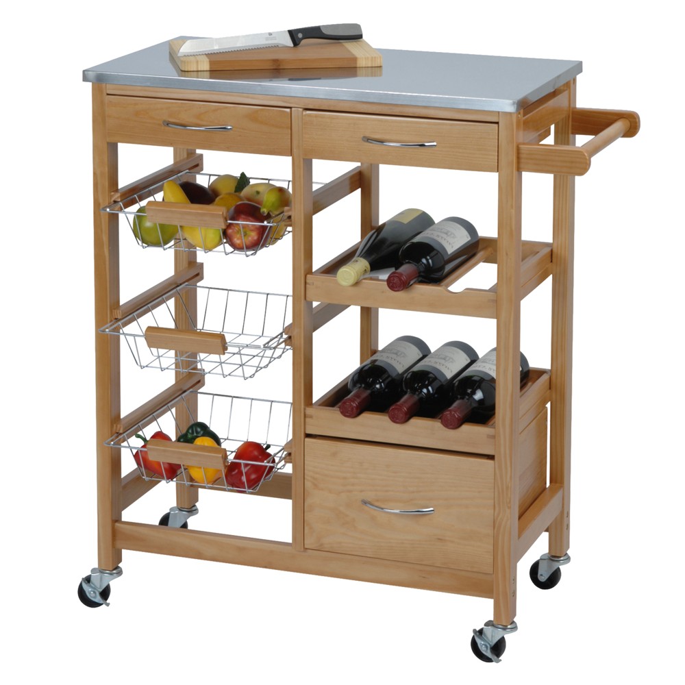 Raft i lëvizshëm në formën e karrocës. Falë rrotave të rrotullueshme, ky raft është shumë praktik në shërbimin apo përgatitjen e ushqimeve. Transportohet lehtësisht dhe falë rafteve shumë funksionale, ju ndihmon në mbaitjen e shisheve, tasave e të tjera. Cilsësi e mirë prodhimi nga druri i pishës natyrale.