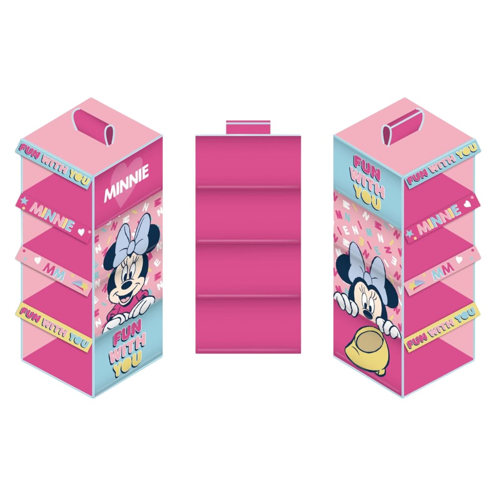Ky produkt është i përshtatshëm për të ruajtur lojërat, librat, dhe materiale të tjera shkollore apo rrobat në mënyrë të organizuar dhe të siguruar. Rafti organizues me temën e Minnie Mouse është një mënyrë e shkëlqyeshme për të inkurajuar organizimin dhe përgjegjshmërinë te fëmijët.