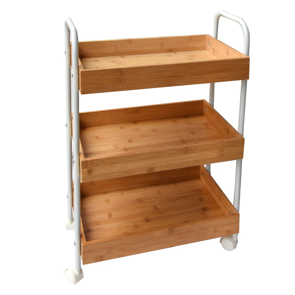 Rafti shumëfunksional me rrota, është një aksesor ideal për mbajtjen e produkteve te ndryshme. Me dizajnin klasik dhe me kombinimin e metalit me drurin e bambusë, ky raft do të dhurojë stil në ambientin tuaj. Rafti ju dhuron hapësire të bollshme për organizimin e produkteve të përdorimit të përditshëm. Funksional dhe tërheqës, me stilin dhe hijeshinë bashkëkohore.