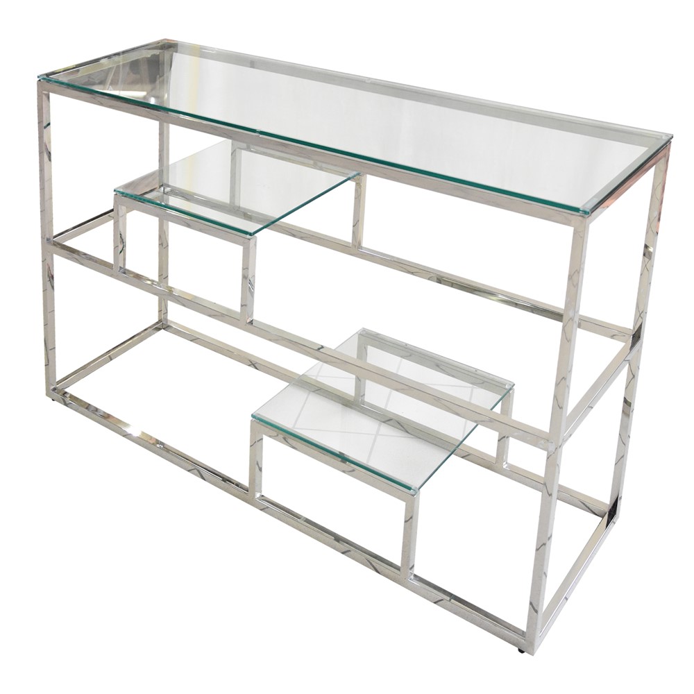 Raft shumëfunksional, strukturë inoksi (argjendi), xham temperuar 8 mm, transparent, 140x38xH79 cm