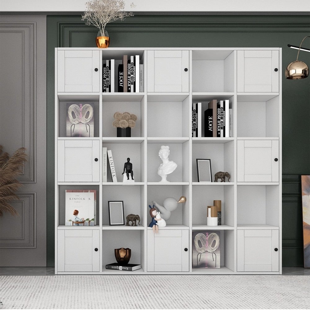 Po vlerësoni:Raft shumëfunskional me kabinet, me 8 dyer, melaminë, e bardhë, 161x30xH161 cm