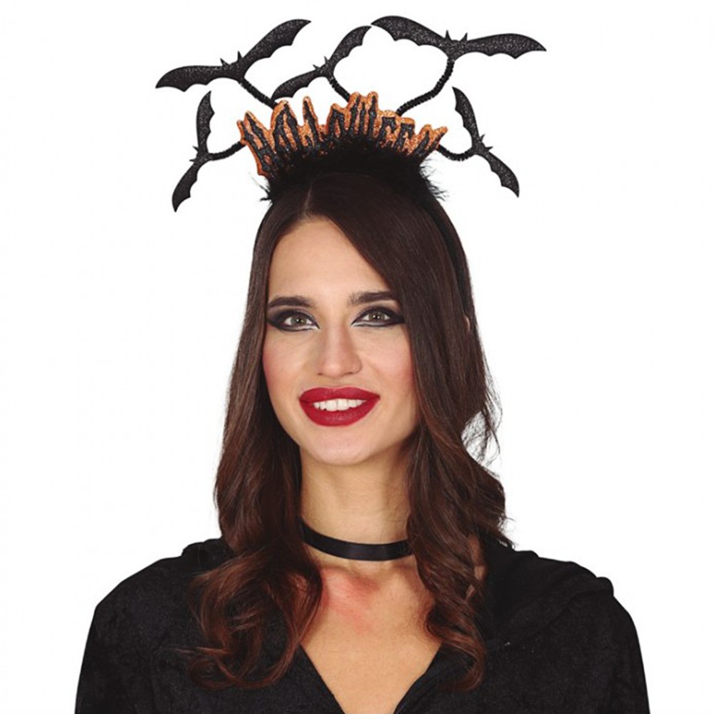 Rreth për flokët, prej materiali najloni, në ngjyrë të zezë dhe portokalli, i dekoruar me lakuriqë nate. Përdoret si aksesor për veshje të ndryshme Halloween-i.