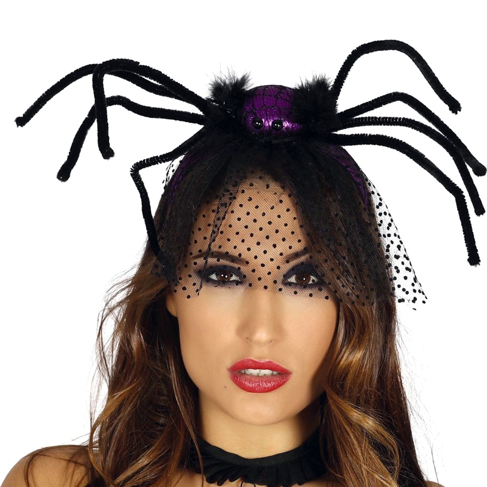 Rreth për flokët, prej materiali najloni, në ngjyrë të zezë dhe lejla, i dekoruar me merimangë dhe vel. Përdoret si aksesor për veshje të ndryshme Halloween-i.