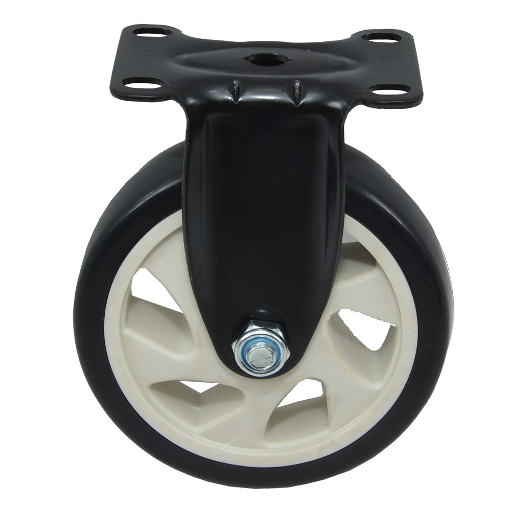 Kjo rrotë nevojitet për të transportuar lehtësisht pesha në sipërfaqe të rrafshët dhe betoni duke siguruar një mbrojtje të plotë të sipërfaqes. Falë materialit të gomës që vesh rrotën në pjesën e jashtme eleminohen të gjitha zhurmat gjatë lëvizjes. Rrota ka një lëvizshmëri 360° duke bërë të mundur një lëvizje në të gjitha drejtimet. Fiksohet lehtësisht në një sipërfaqe të rrafshët nëpërmjet bazamentit me katër vida.