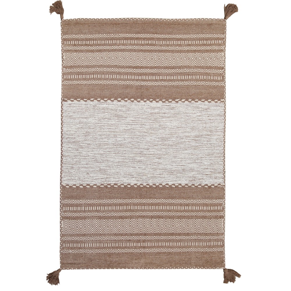 Rrugica e përshkruar është një produkt i rëndësishëm për shtëpinë tuaj, i dizajnuar për të përmirësuar estetikën dhe stilin e dhomës tuaj. Kjo rrugicë është e përbërë prej 60% pambuku dhe 40% viskoze, dhe ka një kombinim ngjyrash të bezhës dhe kafe natyrale. Dimensionet e rrugicës janë 120x170 cm.