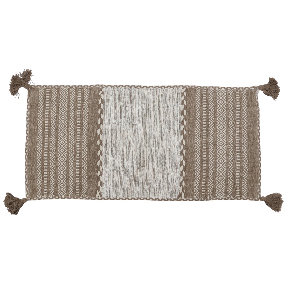 Kombinimi i materialeve të pambukut dhe viskozës siguron një rrugicë që është e butë ndaj këmbëve dhe ka një pamje elegante. Ngjyrat bezhë dhe kafe natyrale ofrojnë një pamje të natyrshme dhe të harmonizuar me shumë ambiente të ndryshme brenda shtëpisë suaj.