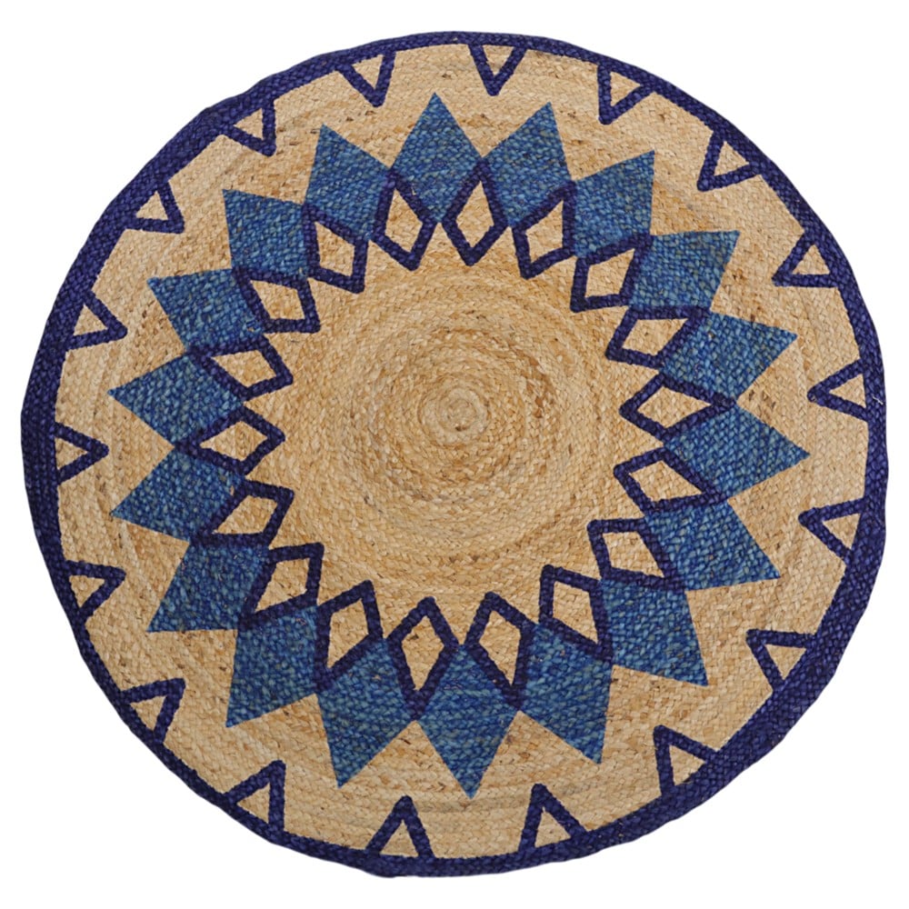 Rrugicë rrethore, 100% jute, bezhë/blu, Dia. 120 cm
