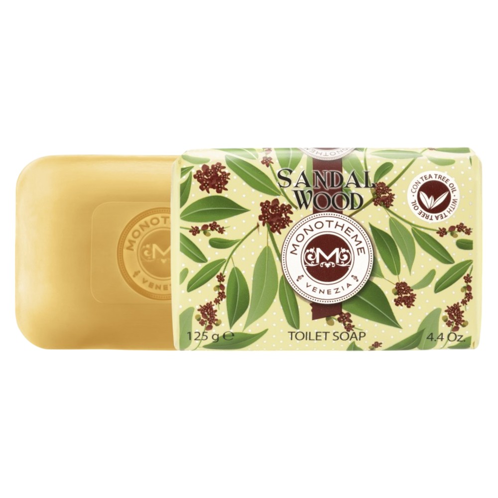 Monotheme pasuron ritualin e saj të bukurisë dhe higjienës me një koleksion sapunësh aromatike. Lëndët e para janë protagonistët e padiskutueshëm dhe shtimi i VAJIT TEA TREE, një antibakterial natyral me veti antiseptike dhe antimykotike, i bën ato një aleat të domosdoshëm për kujdesin e lëkurës tuaj. Një sapun i çmuar me nota të ngrohta të drurit të sandalit.
