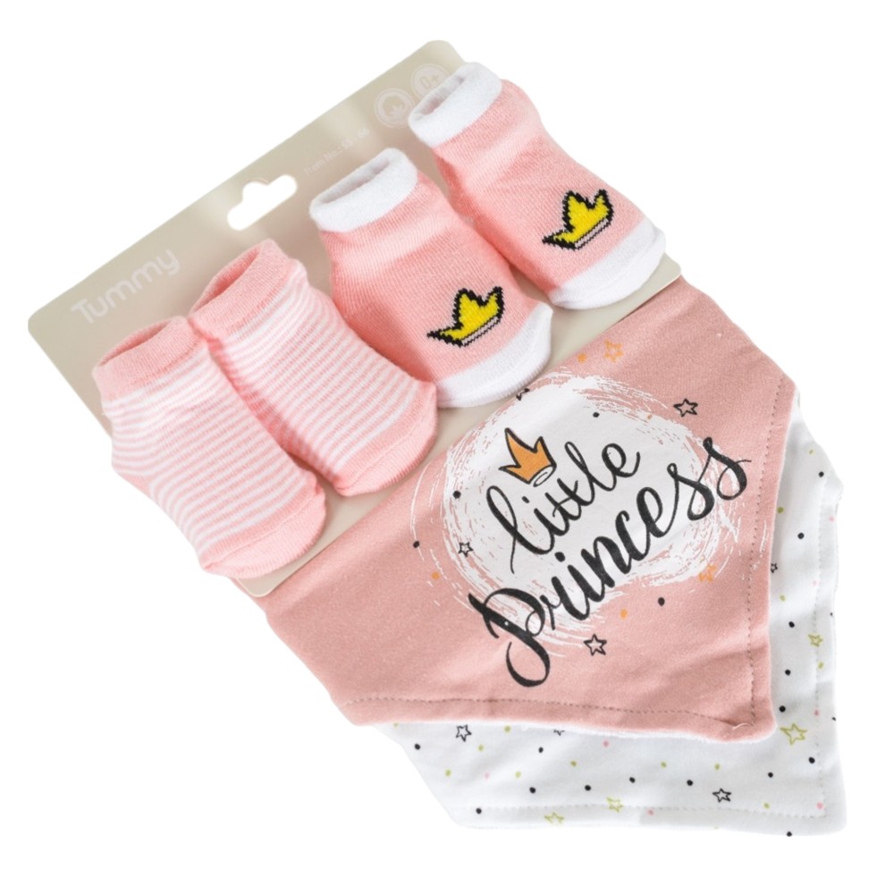 Set praktik dhe elegant “Little Princess”, që përfshin 2 gushore dhe 2 palë çorape në nuanca rozë dhe të bardha. I përbërë nga 100% pambuk i butë dhe i ajrosshëm, ky set është perfekt për lëkurën e ndjeshme të foshnjës, duke ofruar komoditet maksimal gjatë gjithë ditës.