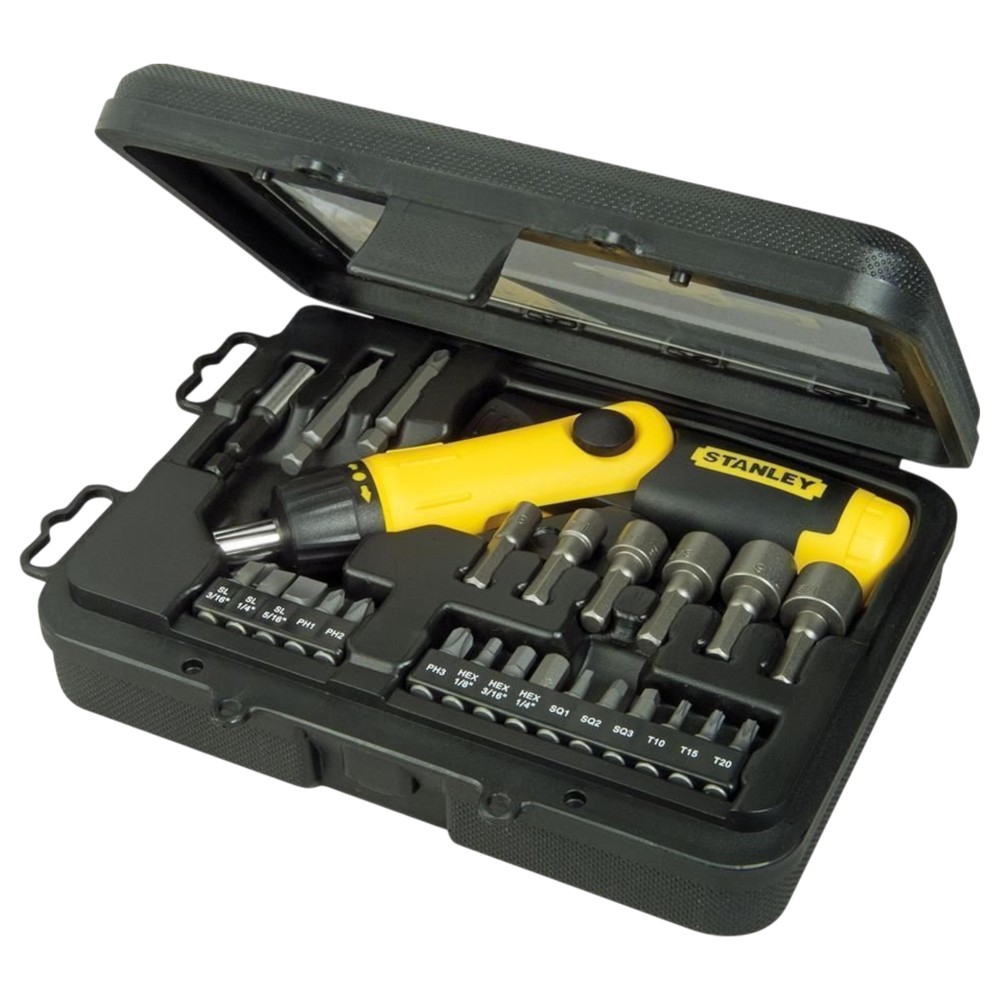 Seti Stanley me 25 maja kaçavide, 1 adaptor dhe 1 zgjatues ofron një gamë të gjerë zgjidhjesh për vidëzim preciz dhe efikas në çdo lloj pune mekanike, ndërtimi apo mirëmbajtjeje. I përfshirë me profile të ndryshme si PH1, PH2, PH3, PZ5, PZ6, PZ7, T10, T15, T20, si dhe maja gjashtëkëndore (Hex) 3 mm, 4 mm, 5 mm dhe përmasa 5 mm deri në 11 mm, ky set garanton përshtatshmëri maksimale për një sërë aplikimesh. Të gjitha pjesët janë të prodhuara nga çelik i fortë krom-vanadium (Cr-V), që ofron rezistencë të lartë ndaj konsumimit dhe jetëgjatësi të shtuar. Adaptori siguron përputhje të shpejtë me pajisje manuale apo elektrike. Një zgjedhje praktike dhe e besueshme për përdoruesit që kërkojnë cilësi dhe funksionalitet në një set kompakt.