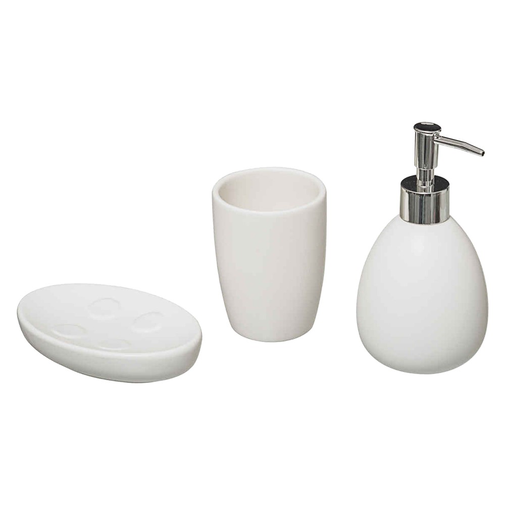 Një set aksesorësh, praktik, me cilësi, i cili do të përshtatet me çdo lloj tualeti. Seti plotëson çdo nevojë për lavamanin tuaj, duke ju lehtësuar punë por dhe duke i shtuar estetikën ambientit. Përbëhet nga mbajtëse sapuni të lëngshëm, mbajtëse për furçat e dhëmbëve dhe mbajtëse pë sapun.