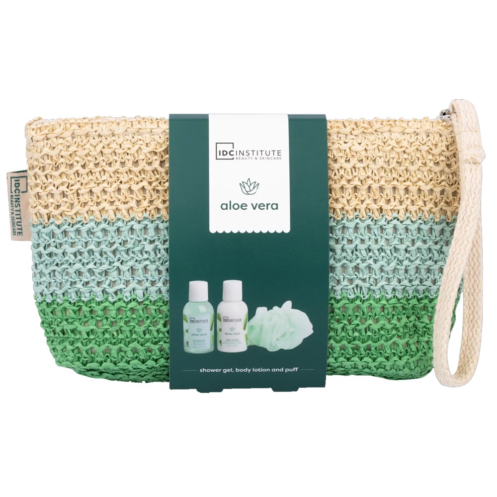 Set dushi me cantë, IDC Institute, Aloe Vera, jeshile, 100ml shower gel, 100ml body lotion, bath puff, 1 pako