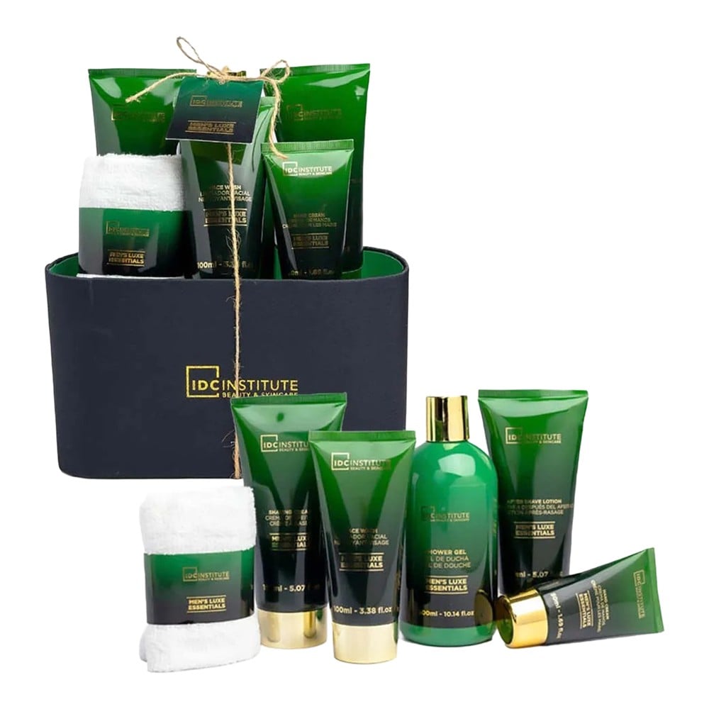 Set dushi per meshkuj, IDC Institute, xhel dushi 300 ml + krem rroje 150 ml + balsam pas rroje 150 ml+ pastrues fytyre 100 ml + krem duarsh 50 ml + pecete, 1 pako