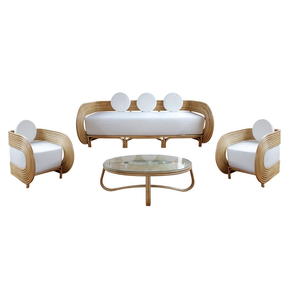 Seti Eight Living ofron një zgjedhje ekuilibruar dhe elegante për ambientin tuaj, duke përfshirë dy kolltukë, një sofë dhe një tavolinë me xham. Bërë nga ratani me nuancë kafe e errët, ky set përmbush standardet e larta të stilit dhe qëndrueshmërisë.
