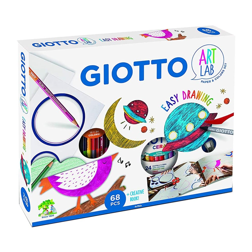 Set fletore vizatimi, 12 pastela, mprehëse lapsash dhe shabllon për fëmijë, Art Lab, Giotto, Fila, letër dhe plastikë, 23x33 cm, mikse, 1 copë