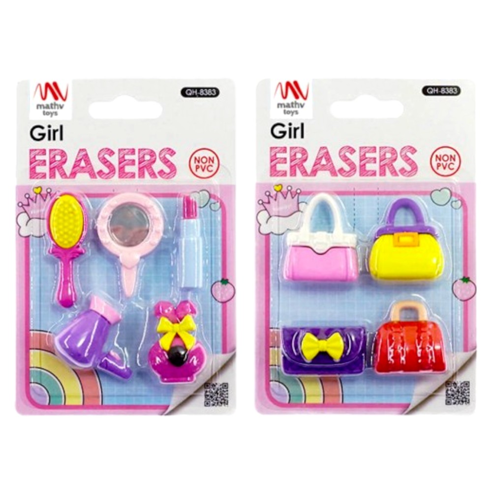 Set goma Girl make up, ngjyra mikse. Ky set ofron goma me dizajne dhe ngjyra të ndryshme për fshirjen e shënimeve dhe gabimeve, duke sjellë një prekje argëtuese në materialet shkollore.