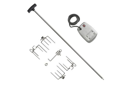 Set helli elektrik për barbekju I cili përmban një motor elektrik 230 v, një shufër helli , 4 pirunjë me 4 hell, një unazë fiksimi dhe një kundrapeshë. Eshtë tëpër praktike për një përdorim sa me të mirë të pjekjes së mishit tuaj. Helli është celik inoks e cila e ben me të lehtë rrotullimin e saj për një pjekje sa më të njëtrajtshme. I përshtatshëm për modelet e barbekjusë Prestige 665 ( kodi 7807600 ) & Prestige PRO 665.