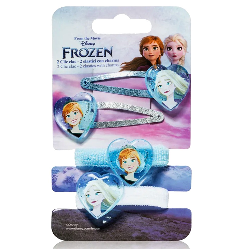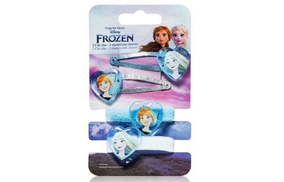 Set kapëse dhe llastik flokësh, Frozen II është një set aksesoresh për flokë të dizenjuar me motive të personazheve të drozen II. Seti përfshin 2 kapëse flokësh dhe 2 llastikë flokësh. Ky produkt është i përshtatshëm për fëmijët që duan të kenë aksesorie flokësh me motive të frozen II për të rregulluar flokët e tyre.