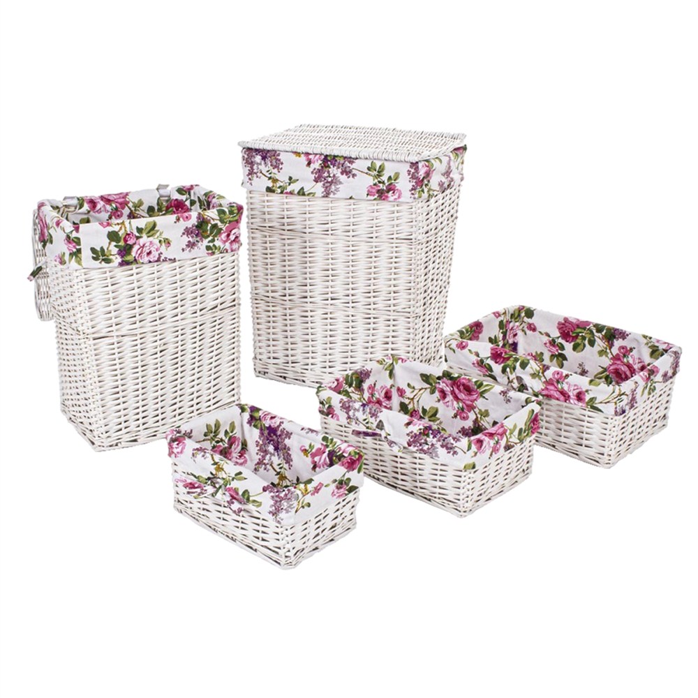 Set koshash me thurje MAELLE i bardhe 5 cope.45x34xH57cm/38x28xH48cm./42x31.5xH19.5cm./36x24.5xH16cm./29.5x19.5xH14cm.