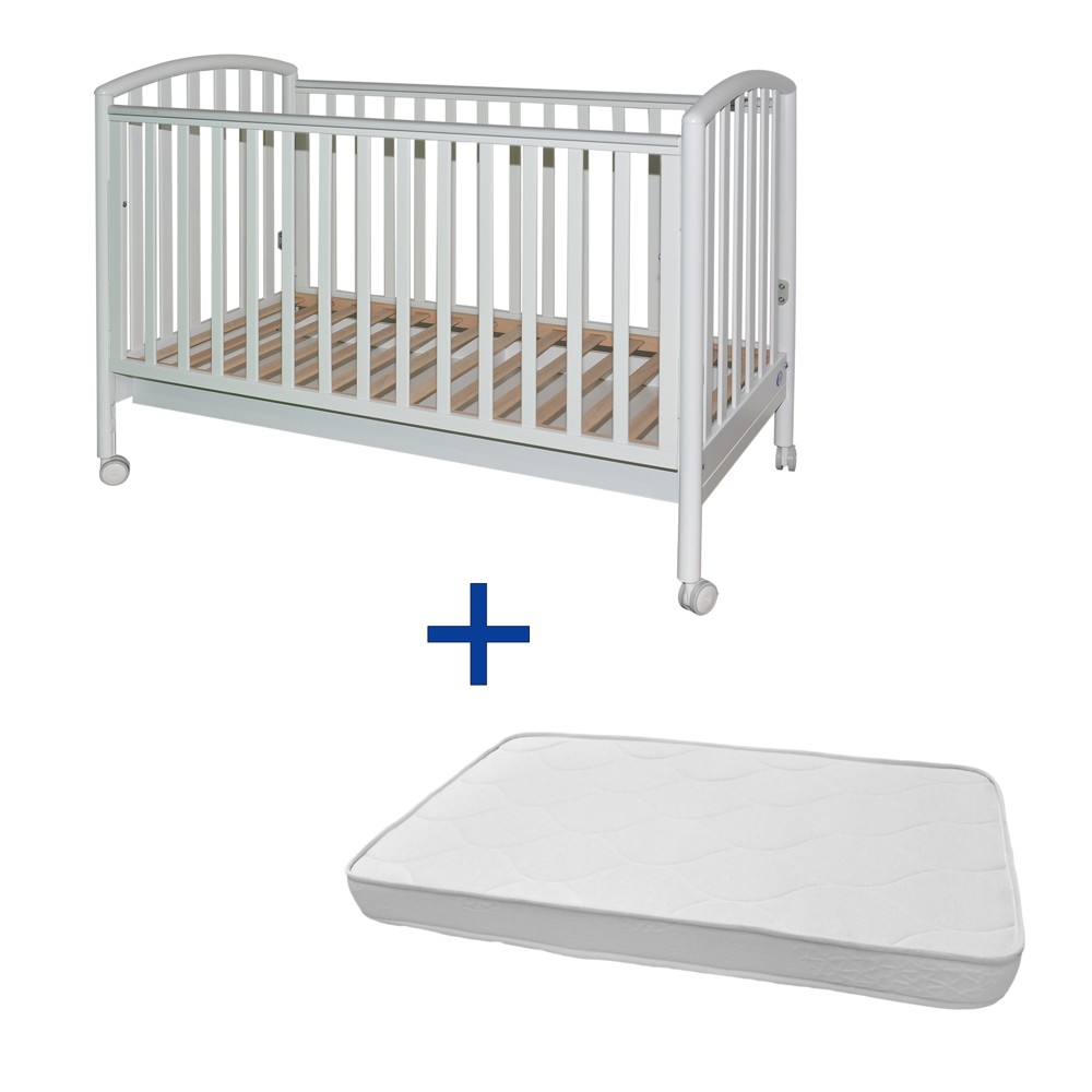 Set krevat dhe dyshek për fëmijë, i cili përmban një krevat për fëmijë me dy nivele lartësie, prej materiali druri, në ngjyrë të bardhë, me përmasa 132x72xH103 cm, dhe një dyshek me përmasa 60x120x15 cm.