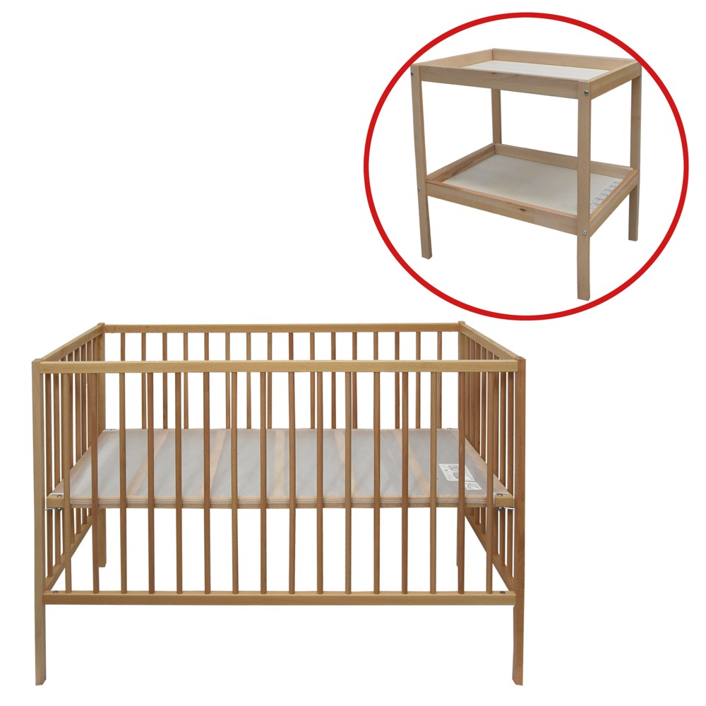 Set krevat për bebe 120x60 cm + raft multifunksional 48x69xh68 cm, druri, natyrale