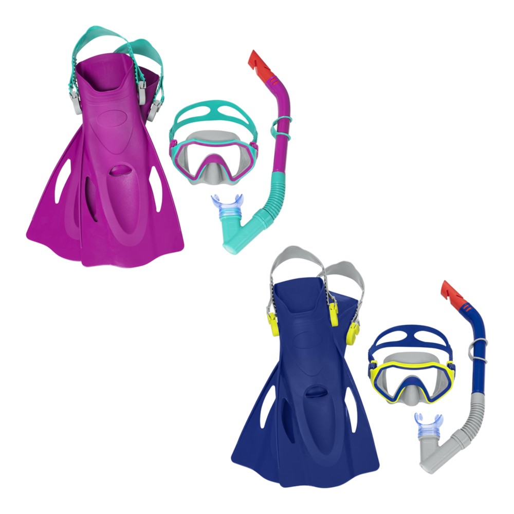 Ideale per eksplorimin e botes nenujore. Xhami trnsparent siguron shikueshmeri te qarte. Struktura prej silikoni ben te pa mundur futjen e ujit ne brendesi pasi pershtatet ne menyre te perkryer me fytyren. Periskopi qendron pas syzeve per te evituar futjen e ujit ne brendesi. Lopatat sigurojne notim te shpejte nen uje. Me mundesi pershtatje per numer kembe 37-41. Aksesori perfekt per pushimet tuaja.